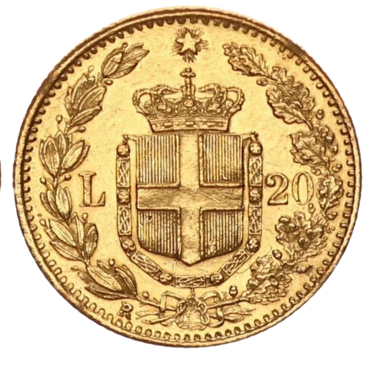 Stock Awaited1882 20 Lire Umberto Gold Coin