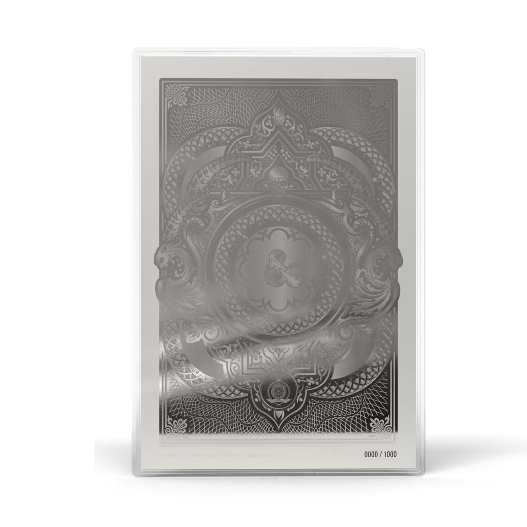 The Dungeon Master’s Guide is the beating heart of every Dungeons & Dragons campaign, now forged in 1oz of 999 pure silver. Featuring the cover art from the 2014 5th Edition release, this collectible foil depicts the lich Acererak, with hollow eyes, an ominous crown, and skeletal detail captured in stunning colour and engraving. This is a tribute to the ultimate architect of dungeons. Are you ready for your next adventure?